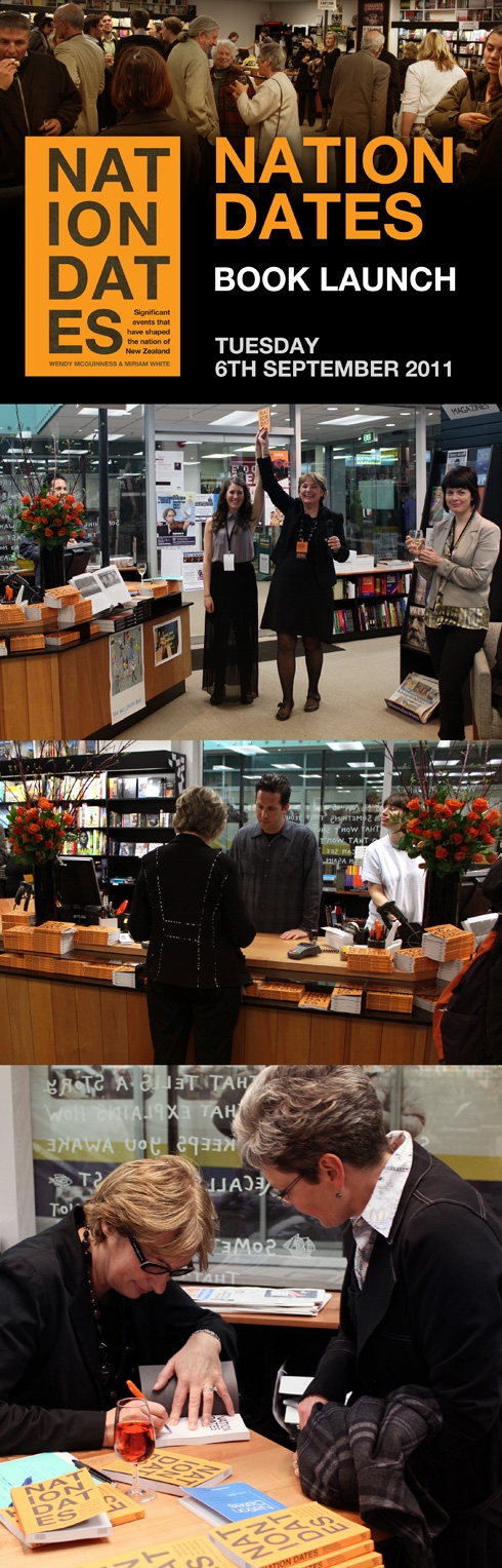 Nation Dates has been launched 6 September at Unity Books in Wellington. You can now purchase Nation Dates direct from our online store, or in store at Unity Books. We will keep you updated as the book becomes available at more locations.